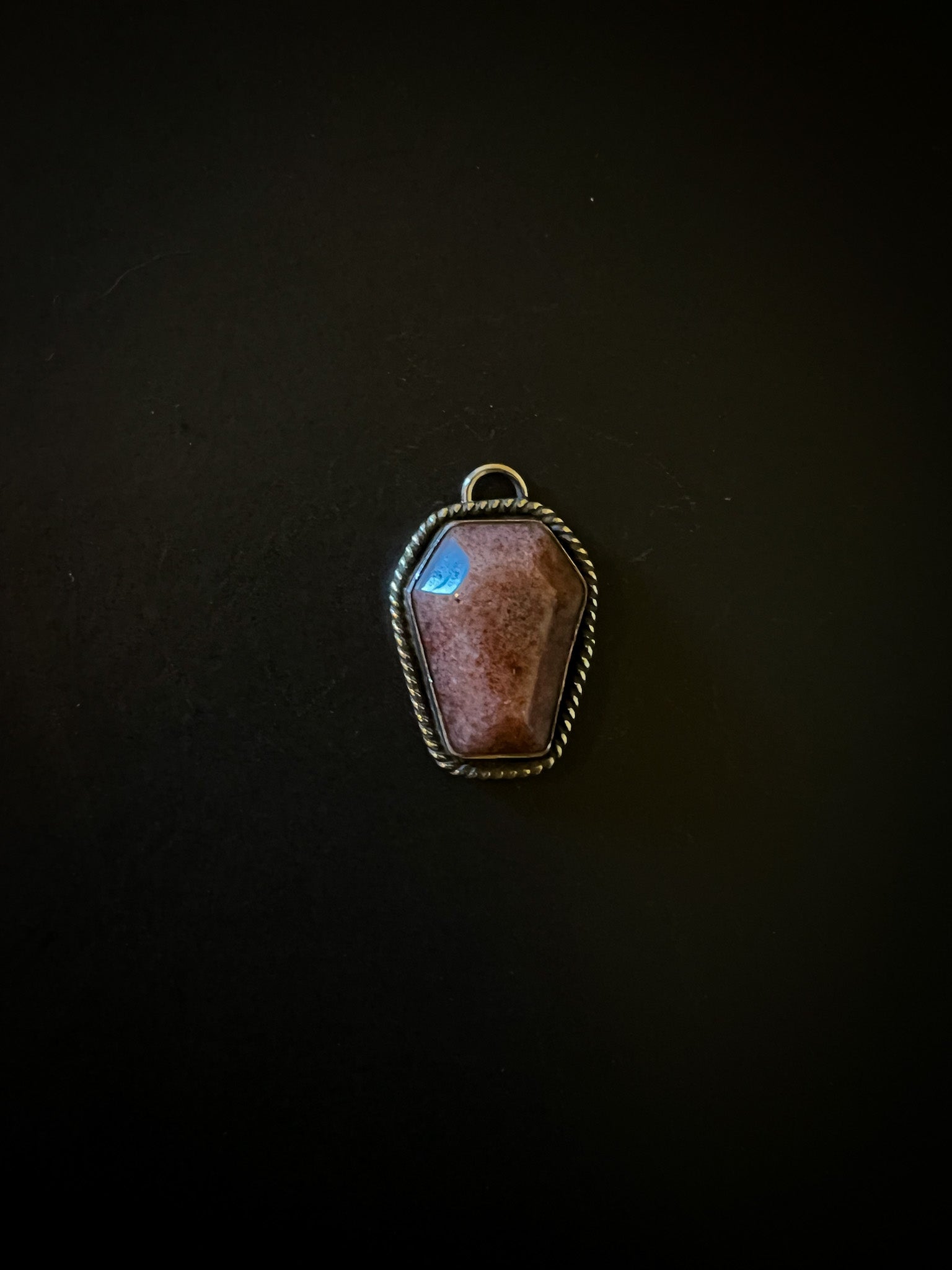 Rose Quartz Coffin Charm set in .925 sterling silver
