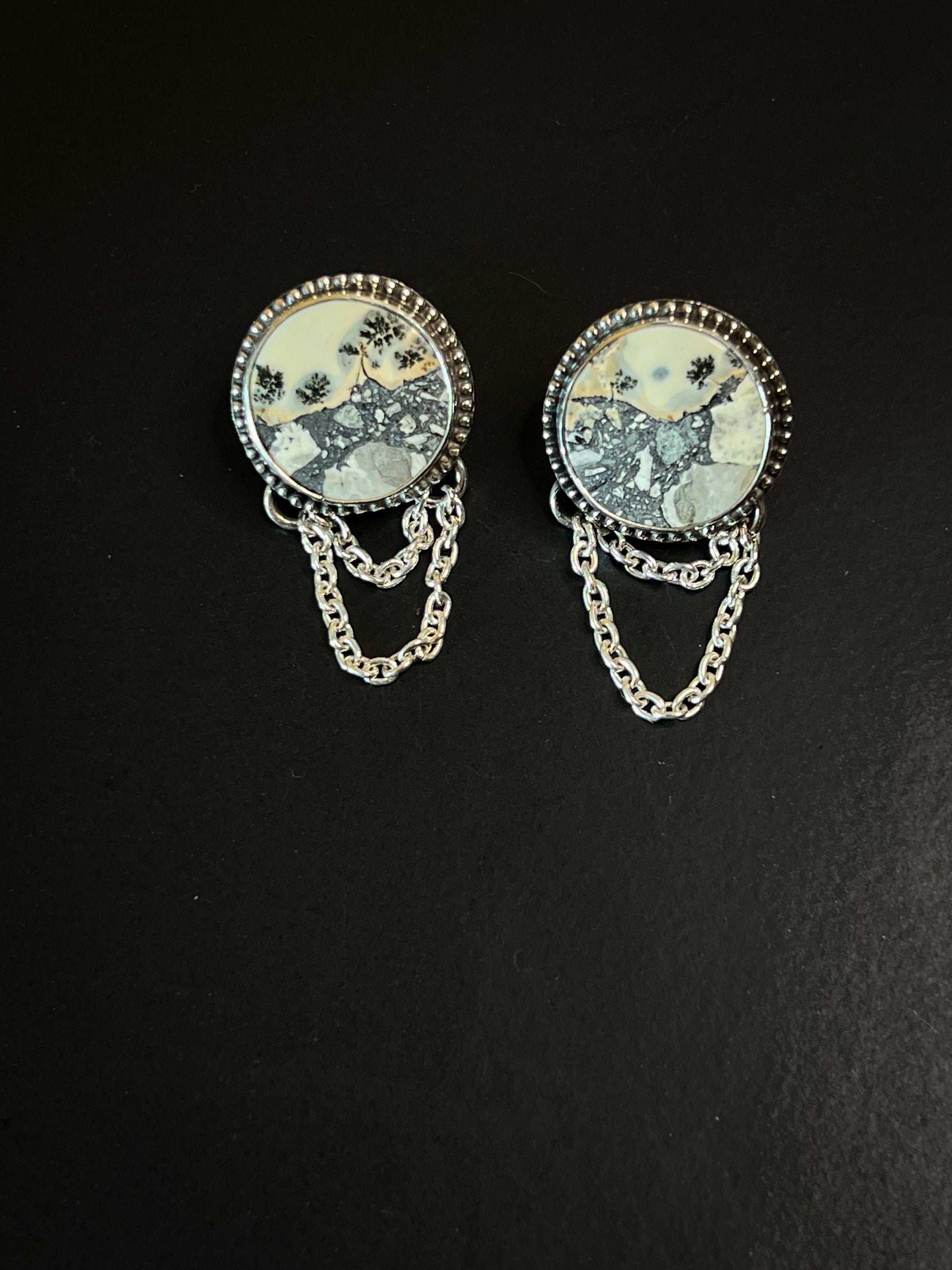 Maligano Jasper butterfly earrings set in .925 sterling silver with sterling silver hanging chain in round or triangle.